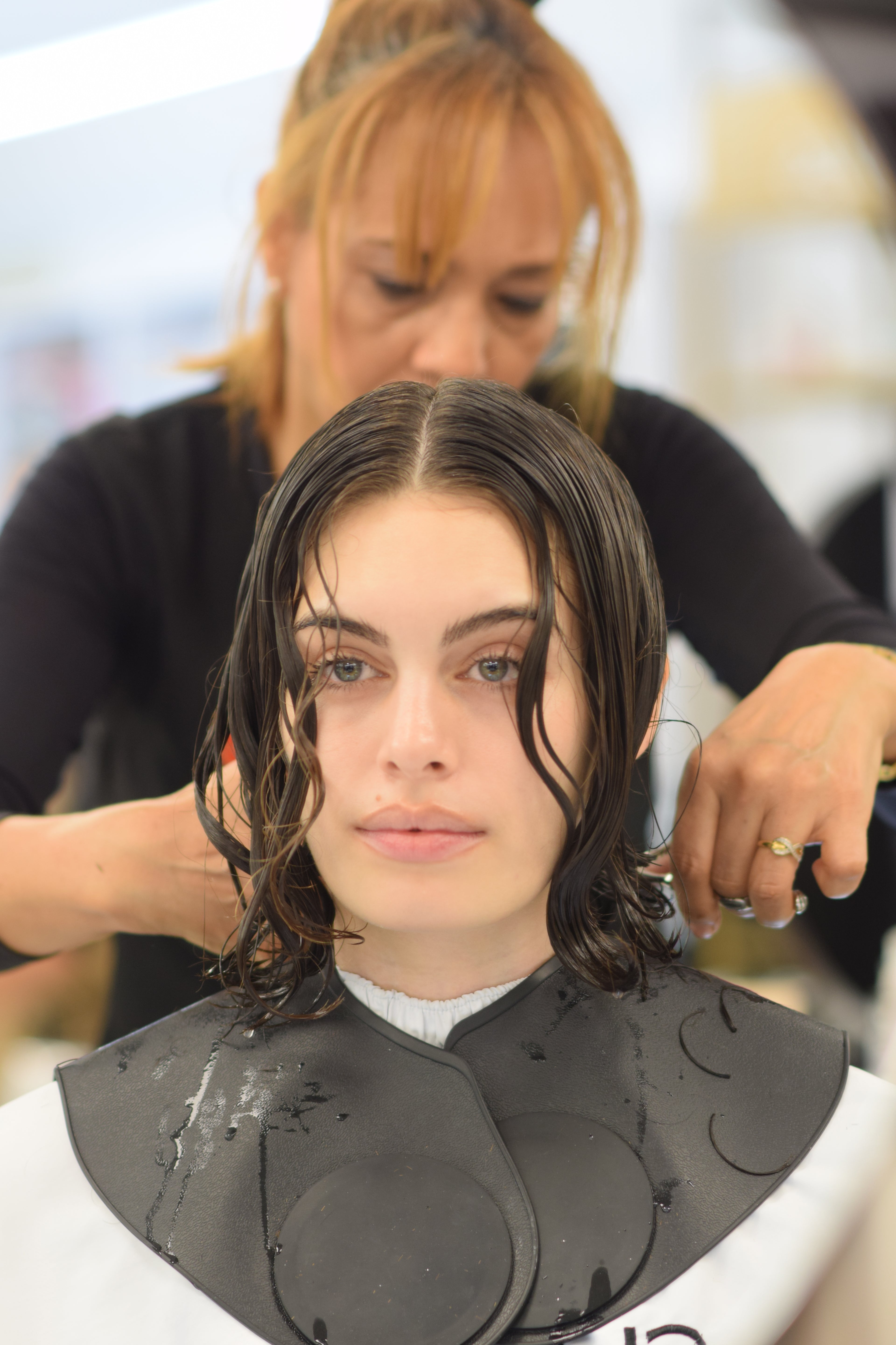 Para realizar el diseño utilizamos la tijera térmica ThermoCut de Carecut, una tecnología que calienta sus hojas y sella las puntas en el momento del corte.